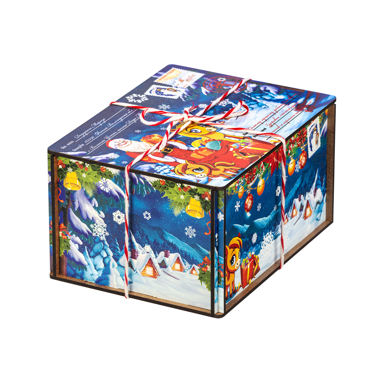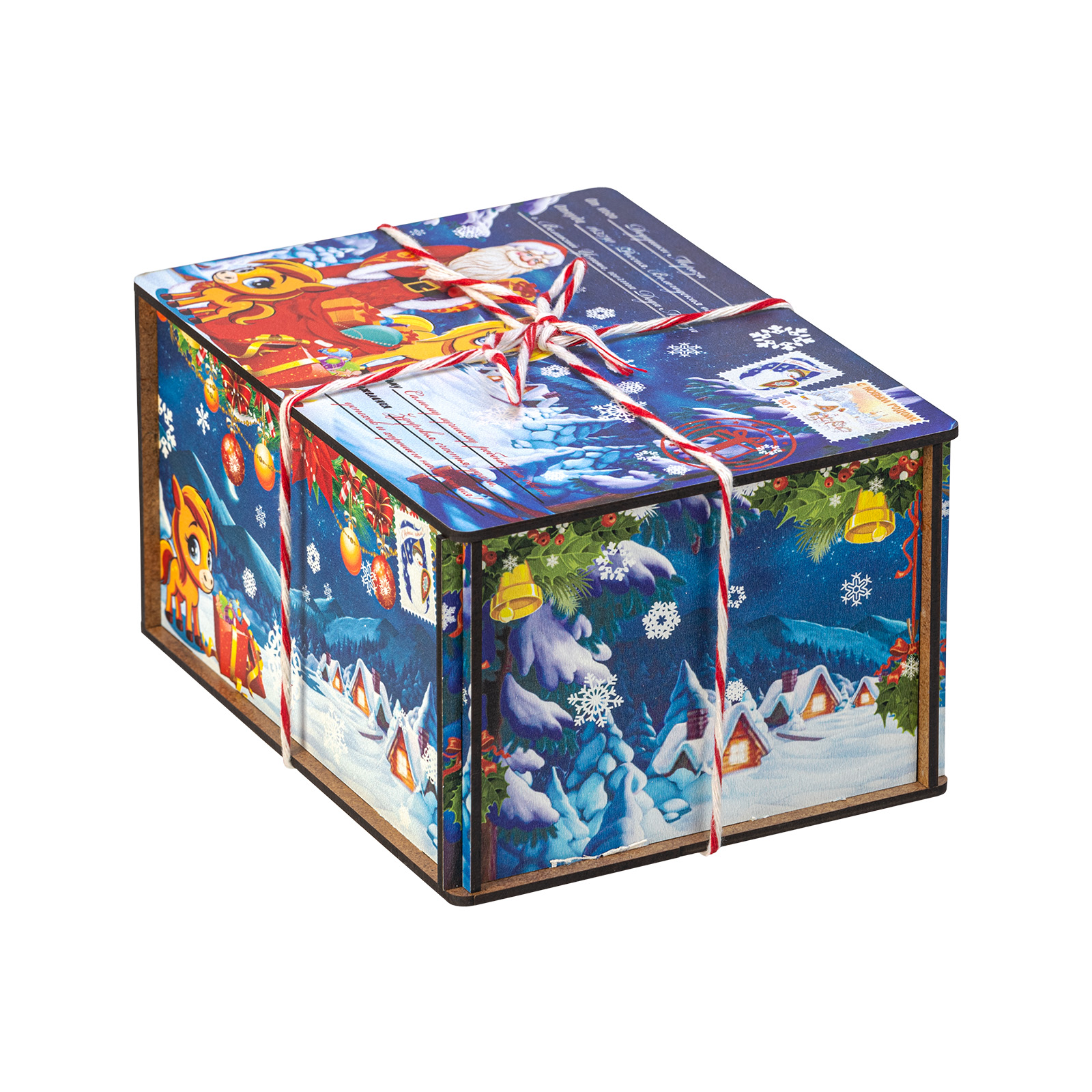 Помните, как вы радовались, получая посылку с гостинцами от дальних родственников? Именно такие искренние яркие эмоции способен вызвать подарок “Посылка от сказочной лошадки”! Это небольшой подарочный набор, помещенный в деревянную коробочку, со всех сторон украшенную пестрыми иллюстрациями с узнаваемыми праздничными символами: Дед Мороз с подарками, еловая ветка с цветными шарами, маленькая очаровательная лошадка. Сверху подарок перетянут красно-белой веревочкой шнурком, который так и хочется поскорее развязать, чтобы посмотреть на содержимое этой посылки! Внутри бережно хранятся вкусные разнообразные лакомства и небольшой памятный сувенир в виде символа наступающего года. Такой подарок прекрасно подойдет к любому новогоднему торжеству или походу в гости!